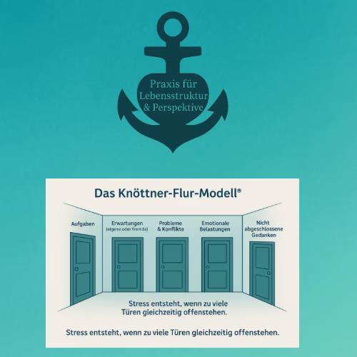 Der Online-Workshop bietet dir eine klare, verständliche und direkte Einführung in das Knöttner-Flur-Modell® – ein Modell, das Überlastung sichtbar macht und dir zeigt, wie du den Alltag wieder steuern kannst.